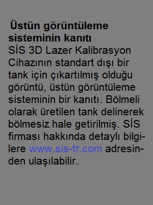 Mevcut patenti ile en gelişmiş teknolojiyi kullanan “SİS 3D lazer kalibrasyon cihazı” tankın iç görüntüsünü lazer ışınları ile bilgisayar ortamına en kaliteli 3D görüntüleme sistemi ile çıkartarak en uygun hassasiyet garantisi veriyor.