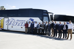 TEMSA’nın Adana shoowromunda gerçekleşen araç teslim törenine Adıyaman Ünal Turizm Yönetim Kurulu Başkanı Ünsal Sönmüş, Yönetim Kurulu Üyeleri Zeynel Sönmüş, Murat Sönmüş, firma çalışanları Ahmet Taş, Mehmet Aktoprak, Bekir Aktoprak, Cengiz Koca, TEMSA Satış Direktörü Murat Anıl ve Satış Müdürü Baybars Dağ katıldı.