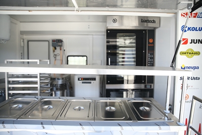 Projenin başındaki isim olan Afet Treyleri Projesi Yöneticisi ve Özünlü Damper CEO’su Ufuk Özünlü ise treylerin sağlık, hijyen, barınma, beslenme, enerji ve ulaşım ihitayaçlarını tek merkezden karşıladığını belirterek şu bilgileri verdi: “Afet Treylerini tasarlarken, deprem bölgesinde ortaya çıkan ihtiyaçları belirlemeye çalıştık. 5 projenin birleştirilmesinden ortaya hibrit bir proje çıktı. Bunun sonucunda… Aracımızda 4 tane tuvaletimiz, 2 tane banyomuz var. Tuvaletler uçaklarda ve yatlarda kullanılan vakum sistemi ile çalışıyor. 4 kişilik bir yatakhanemiz var. Bir tane doktor muayene odamız var. Burada ilaçları muhafaza edebileceğimiz ekipmanlarımızda hem ısıtıcılar hem soğutucular mevcut. Mutfak kimseye ihtiyaç duymadan sadece ekmek ve çorba pişiriyor. Tam otomatik, saatte 600 ekmek ve 600 kişilik çorbayı üretiyor. Makine, ekipman odamız var. Delici, kırıcı aklınıza ne geliyorsa yani gaz maskesine kadar yangınla mücadeleye kadar her türlü ekipmanı içine koyduk. Önünde bir tane jeneratörümüz var. Treylerimizin çatısı tamamen güneş enerji panellerinden oluşuyor. Kendi enerjisini kendi üretiyor. Üretemediği durumda ne yapacağız? Treylerin tabanına komple elektrik depo olarak tasarladık. Mut- fağımızın içme suyu treylerin altında. Kullanma suyu treylerin altında. Yakıt deposu treylerin altında. Dışarıya da bir enerji ihtiyacı olursa diye 50 kWh jeneratör koyduk. 20 kişilik telefon şarj ünitesi var. 22 tane malzeme dolabı var. 2 ton atık su, 2 ton temiz su deposu var. Açılır paneller sayesinde treylerin kapalı hacmi iki katına çıkıyor. Anlaşıldığı üzere felaketlerde ortaya çıkan olumsuzlukları gidermek adına tüm özellikleri tek treylerde bir araya getirdik.”