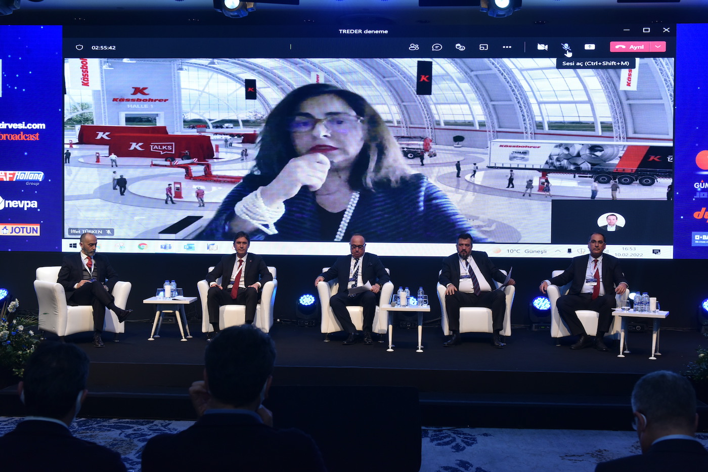 Kassbohrer Yönetim Kurulu Üyesi İffet Türken, sürdürülebilirliğin dünyada en önemli konu haline geldiğini belirterek, yük taşımacılığının Avrupa’da 2040 yılına kadar yüzde 45 artacağını bunun için adımların şimdiden atılmaya başlandığını anlattı. Yeni araç kombinasyonları ve yeni mevzuatları gerekli kılan gelişmelerin ortaya çıktığını aktaran Türken, “Emisyon şartlarını biz memnuniyetle karşılıyoruz. Ar-Ge’mizi ön plana çıkarıyoruz. Geniş bir inovasyon ekosisteminde müşterilerimizle, tedarikçilerimizle, üniversitelerle iş birliği içinde çalışmalıyız. İntermordal dediğimiz taşımalar ön plana çıkıyor, daha uzun araçlar gelişiyor. Bu gelişmeleri destekliyoruz, akıllı teknolojileri yatırım yapılması gerektiğine inanıyoruz. Avrupa İnovasyon Ödüllerinde 2021 yılında 3 ketagoride ödül kazandık.” diye konuştu.