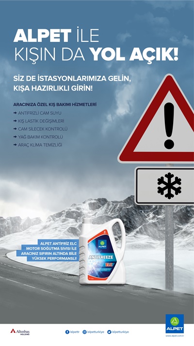 Akaryakıt sektöründeki yükselişini hız kesmeden sürdüren Altınbaş Petrol (Alpet), kış sezonunda da sürücülerin yanında oluyor. Güvenli sürüş için hazırlıkların tam olması gerektiğine değinen Alpet, araçlarında kış hazırlığı yapacak sürücüleri istasyonlarına davet ediyor. Alpet kış lastik değişimleri, Antifreeze’li cam suyu ve motor soğutma sıvısı değişimi, cam sileceklerinin kontrolü, yağ bakım kontrolü ve araç klima temizliği konularında sürücülere yardımcı oluyor.