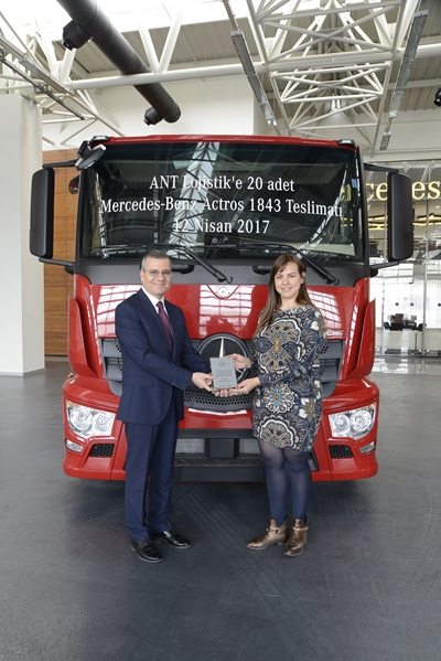 Mercedes-Benz Türk Kamyon Pazarlama ve Satış Müdürü Bahadır Özbayır ise “Bugün, iş ortağımız ANT Lojistik şirketine 20 adet yeni Mercedes-Benz Actros1843 LSnRA teslimatını gerçekleştirmenin gururunu yaşıyoruz. Geçen sene piyasaya sunduğumuz ihtiyaca uygun geniş ürün yelpazemiz içerisinden Mercedes-Benz Actros1843 özellikle araç taşıması alanındaki kullanım için güçlü bir araç. 2017 yılının ikinci yarısında ulusal ve uluslararası lojistik sektörünün daha da hareketleneceğini ve bu araçlarımıza ilginin artacağını düşünüyoruz.” ifadelerini kullandı.