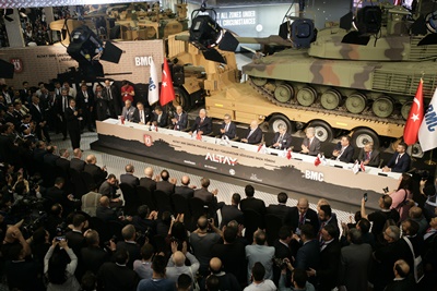 BMC, IDEF 2019 Fuarı’nda Türkiye’nin ilk tankı ALTAY’ın seri üretimi için alt yükleniciler Aselsan, Roketsan, MKE ve Havelsan ile Savunma Sanayi Başkanı Prof. Dr. İsmail Demir’in katılımıyla sözleşme imzaladı.