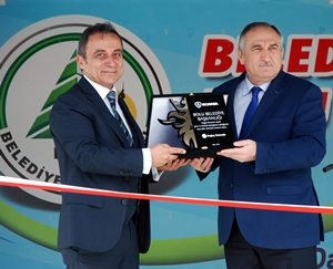 Konuşmaların ardından Doğuş Otomotiv Scania Genel Müdürü İlhami Eksin Bolu Belediye Başkanı Alaaddin Yılmaz’a teşekkür plaketi verdi.