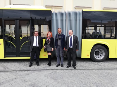 Romanya’nın Sibiu Belediyesi tarafından açılan 18 metrelik otobüs ihalesinden başarıyla ayrılan Karsan, 17 adet Menarinibus Citymood marka otobüsü düzenlenen törenle teslim etti. Romanya’da düzenlenen teslimat töreninde, Sibiu Belediye Başkanı Astrid Fodor, Tursib Genel Koordinatörü Dan Caprariu, Karsan Ticari İşler Genel Müdür Yardımcısı Muzaffer Arpacıoğlu, Karsan İhracat Yöneticisi Emre Hür hazır bulundu.