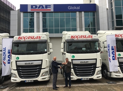 Sektörün hızla büyüyen firmalarından Bulung Lojistik firmasına Glokal Orhanlı tesisinden 15 adet DAF XF LD 480 4×2 çekici teslimatı yapıldı. Aynı gün Glokal’in İkitelli’de bulunan tesisinden de gene sektörün öncü firmalarından ve filosunda bulunan 32 adet aracın tamamı DAF marka olan Koçaslan Taşımacılık firmasına 6 adet XF LD 460 4×2 çekici teslimatı yapıldı.