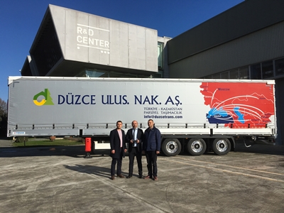 Tırsan’ın farklı taşıma kombinasyonları için en ideal çözümü olan ve operasyonel kolaylık sağlayan modeli Perdeli Maxima Plus’ın filolardaki ağırlığı artıyor. Düzce Uluslararası Nakliyat’ın da filosuna kattığı 5 adetlik Perdeli Maxima Plus araçlarının teslimatı için Tırsan Adapazarı fabrikasında düzenlenen törenine, Daf-Tırsan Satış Yöneticisi Recep Öndal Demirci, Düzce Uluslararası Nakliyat Yönetim Kurulu Üyesi Serkan Civelek ve İstanbul Şube Müdürü Sefa Civelek katılım gösterdi.