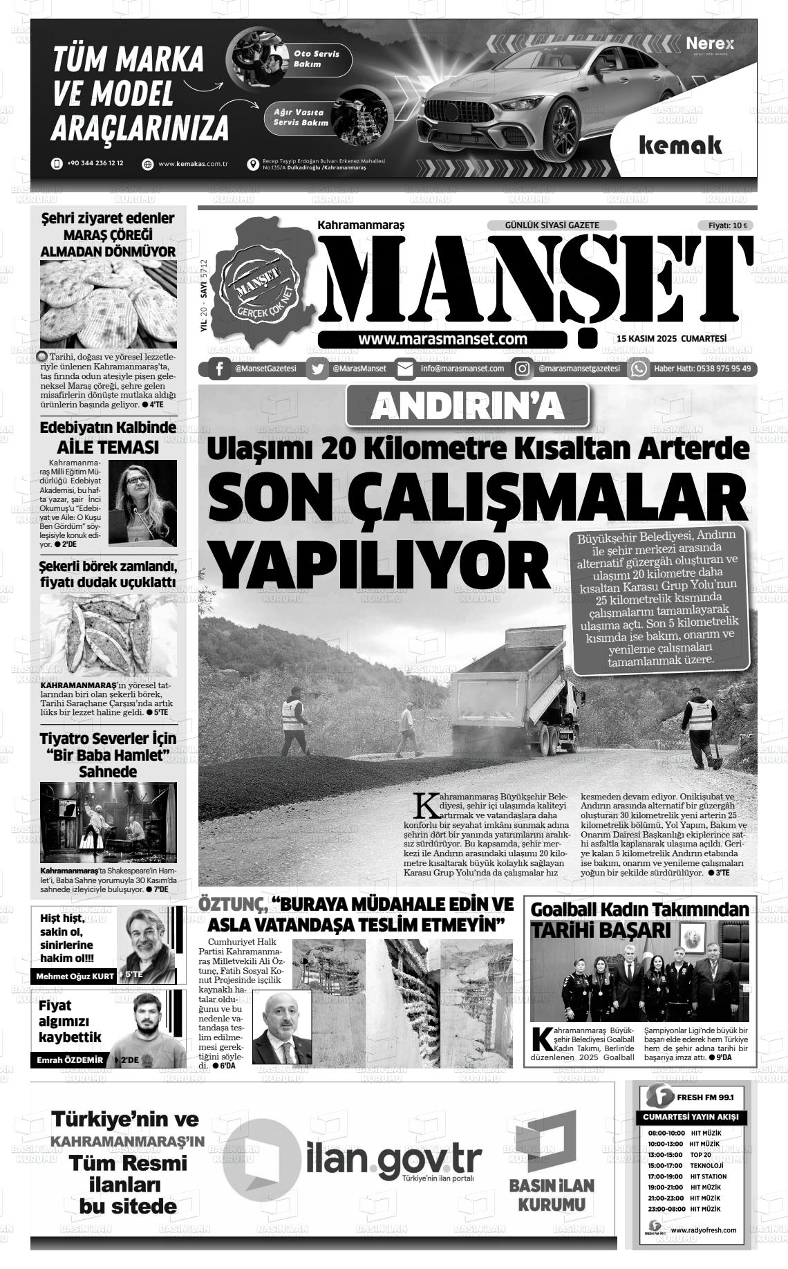 KAHRAMANMARAŞ MANŞET