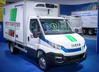 IVECO ayrıca sektördeki bir ilk için Carrier Transicold ile de ortaklık kurdu: Donduruculu gövdeye sahip bir kamyonda Dizeli tamamen ortadan kaldıran Frappa gövdeyle donatılmış ve Carrier Supra® CNG teknolojisi içeren yepyeni 26 tonluk 400 hp Stralis NP rigid. Hem araç hem de soğutma grubuna, şasiye monteli seri CNG tanklarıyla beslenen son teknolojili Tam doğal gaz motorlarıyla güç verilmektedir. Genellikle gövdedeki motor gerçek bir kirletici olan motor araçtaki motordan daha az regülasyonlu olduğundan, bu ultra düşük NO2 ve PM emisyonları sağlamaktadır. Bu çığır açıcı araç 1000 km’ye kadar menzile sahiptir ve şehir merkezlerinde gece teslimatları yapabilir.