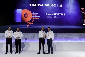 Kasım Beyaztaş (İstikrar Petrol) , A.Kerim Özalp (Onur Petrolcülük) ve Alper Nacar’a (Neft Petrol) ödülünü Yasin Kadooğlu verdi.