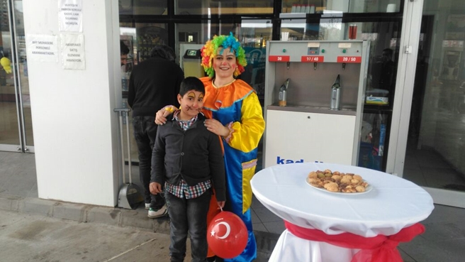 Palyaço kostümleriyle çocukları karşılayan akaryakıt istasyonu çalışanları, çocuklara çeşitli hediyeler dağıttılar. Kadoil istasyonlarında ayrıca o güne özel motorinde % 10, benzinde % 5, LPG’de ise %20’ye varan indirim kampanyası gerçekleştirildi.