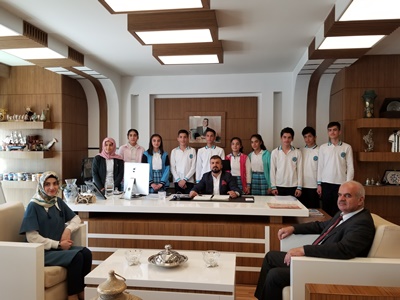 Hacı Kemal Kadooğlu Ortaokulu öğrenci, okul müdürü ve öğretmenleri, Veli Kadooğlu’nun makamında bir araya geldi. Kadooğlu, 23 Nisan Ulusal Egemenlik ve Çocuk Bayramı dolayısıyla makamını temsili olarak devralan öğrencilerle bir süre sohbet etti, öğrencilerin taleplerini dinledi.