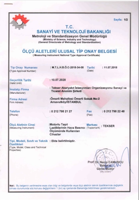 Bu çerçevede Tekser, 2006 yılında alınmış olup, 2018 yılında güncellenmiş olan, Tip Onay belgesi ve TSE Uygunluk belgesi ile Sanayi Bakanlığı’na ilk üretimde resmi mühür yetkisi için müracaat yapmış, gerekli muameleler ve kontroller gerekli mercilerce sağlanmıştır. Bunun akabinde Tekser A.Ş. fabrika mühür oluru alınmıştır. Bu doğrultuda sevk edilen ve edilecek olan Tekser Hava Saatleri tip onay belgesine uygun ve resmi geçerli mühürlü olarak gönderilmektedir.
