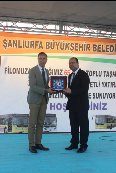 Uzun yıllara dayanan deneyimiyle hem yurtiçinde hem yurtdışında başarılı işlere imza atan Türk otomotiv sanayisinin yerli üreticisi Karsan, Şanlıurfa Büyükşehir Belediyesi’ne 20 adet 18 metre dizel körüklü otobüs teslimatı gerçekleştirdi. Kuruluşunun 50. yılını geride bırakan ve Bursa’da yer alan iki fabrikasında toplu taşıma ve ticari araç üretimi gerçekleştiren Karsan’ın ürettiği otobüslerin teslimat töreni Haleplibahçe, Şanlıurfa Müzesi’nde yapıldı. Törene, Şanlıurfa Büyükşehir Belediye Başkanı Nihat Çiftçi, ilçe belediye başkanları, Ulaşım Daire Başkanı Mehmet Can Hallaç, Karsan Genel Müdürü Muzaffer Arpacıoğlu, Karsan Kamu Satışları Müdürü Adem Ali Metin, Karsan Satış Sonrası Hizmetler Yöneticisi Şafak Demirel’in yanı sıra çok sayıda sivil toplum kuruluşu temsilcileri ve vatandaş katıldı.
