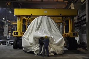 Transformatör iskeletinin yüklemeye hazır hale gelmesinden sonra, yükleme operasyonun her aşamasında yer alan Manfred Richter, yükün platform üzerine yerleştirilmesi, platformda yer alan yük bağlama halkalarına bağlanması ve branda işlemlerini tamamlayarak, trafik güvenliği kuralları çerçevesinde son kontrollerini yaptı ve Duisburg limanına gitmek üzere yola çıktı.