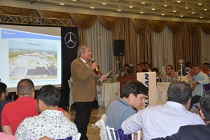 Koluman Motorlu Araçlar Ticaret ve Sanayi A.Ş ,Ticari Araçlar Direktörü Ali Türkay Saltık konuşmasında;Koluman Otomotiv Endüstri A.Ş’nin Mersinde kurulu Türkiyenin en modern üstyapı ve treyler üretim tesislerinden biri olduğunun altını çizdi. KOE’nin Mersin Bölgesinin Ar-Ge merkezi olmaya hak kazanan ilk ve tek fabrikası olduğunu,ayrıca Daimler AG’nin onaylı üstyapıcısı olduğunu dile getirdi.Koluman’ın KOE yatırımının tüm hızıyla devam ettiğini yalnız iç pazarda değil ,Rusya, Tataristan ve Moskova da yapılan yatırımlarla ve Almanya, Passau da yapılması planlanan yatırım ile İhracat pazarların da da söz sahibi olmayı umduğunu ,KOE’nin artacak