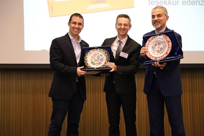 Utikad 36. Olağan Genel Kurulunda yeni dönem için yeniden başkan seçilen Utikad Yönetim Kurulu Başkanı Emre Eldener, Piri Reis Üniversitesi İktisadi ve İdari Bilimler Fakültesi Uluslararası Lojistik ve Taşımacılık Bölümü Başkanı Prof. Dr. A. Zafer ACAR ve Piri Reis Üniversitesi Uluslararası Lojistik ve Taşımacılık Bölümü Öğretim Üyesi Dr.Öğr. Üyesi Emre ÇAKMAK ‘ a sektöre olan katkıları adına hatıra hediyelerini takdim etti.