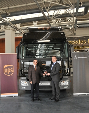 Türkiye’de 1988 yılından bugüne paket ve kargo taşımacılığı alanında faaliyet gösteren UPS, 23 adet Mercedes-Benz Actros 2541 L/NR, 2 adet Mercedes-Benz Actros 1841 LSNRL ve 2 adet Mercedes-Benz Atego 816 model kamyonu, Mercedes-Benz Türk Pazarlama Merkezi’nde yapılan törenle teslim aldı.