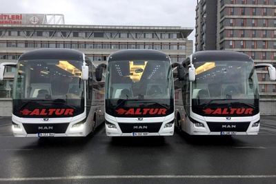 İstanbul’da düzenlenen ilk törende, taşımacılık sektörünün önemli firmalarından Altur, 2020 yılında yapacağı 10 adetlik MAN Lion’s Coach yatırımının ilk 3 adedini Ocak ayında teslim aldı. Önemli firmalara personel taşımacılığı hizmeti veren, İstanbul merkezli Altur, “Coach of the Year 2020 – Yılın Otobüsü” seçilen MAN Lion’s Coach otobüslerini, tercih etti. Teslim edilen 12 metre 2+2 koltuk düzenine sahip otobüslerin personel taşımacılığında kullanılacağını belirten Altur yetkilileri, Lion’s Coach’ı hem modern tasarım ve rahat koltukları hem de yakıt ekonomisi nedeni ile tercih ettiklerini vurgulayarak, sürdürecekleri yatırımlarına da MAN ile devam edeceklerini belirttiler.