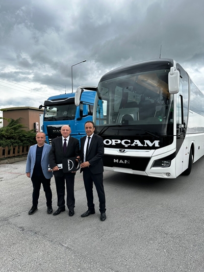 Tokat’ın 62 yıllık güçlü firmalarından Topçam Turizm, filosunu gençleştirme amacıyla 1 adet MAN Lion’s Coach yatırımı yaptı. 1961 yılında 2 otobüs ile yola çıkan Topçam Turizm güvenli, konforlu, ekonomik, standart hizmetler üretmeyi ve kalite sistemini sürekli iyileştirmeyi bir görev olarak benimsemsiyor ve Tokat halkının ve yolcularının güveni ve tercihi ile, zirvenin bilincinde filosunu genç tutmaya devam ediyor. MAN Kamyon ve Otobüs Tic. A.Ş. nin Ankara Akyurt’taki Tesislerinde, şirket genel müdürü Ömer Kesman ve şirket yetkilileri Aziz Yılmaz, Fatih Sahlep’e otobüsler teslim edildi.