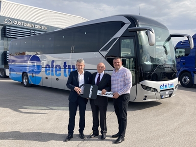 MAN’ın; güvenlik, konfor, üstün teknoloji, ekonomik ve sürdürülebilir özellikleri ile son olarak Sustainable Bus Award (Sby Award) 2022 – Sürdürülebilir Otobüs Ödülü’nü alan otobüsü Lions Coach ve yine bol ödüllü NEOPLAN Tourliner seyahat sektöründe yoğun talep görmeye devam ediyor. Talepler doğrultusunda teslimatlarına hız kesmeden devam eden MAN Kamyon ve Otobüs Ticaret A.Ş., birbiri ardına düzenlediği törenlerle 4 seyahat firmasına 3 adet Lion’s Coach ve 2 adet NEOPLAN Tourliner’ı teslim etti. Yolcularına eşsiz bir seyahat keyfi yaşatmak amacıyla filolarını MAN Lion’s Coach ve NEOPLAN Tourliner ile güçlendiren firmalar, düzenlenen ayrı ayrı törenlerle MAN Kamyon ve Otobüs Ticaret A.Ş. Otobüs Satış Direktörü Can Cansu ve Otobüs Satış Bölge Yöneticisi Ufuk Demirer tarafından yeni otobüsleri firma sahiplerine sembolik MAN anahtarı ile beraber teslim edildi.