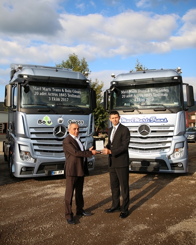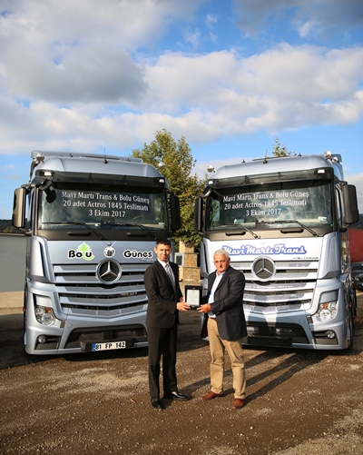 Mercedes-Benz Türk Yetkili Bayi Hasmer Otomotiv’in destekleriyle gerçekleşen bu satışla birlikte Bolu Güneş ve Mavi Martı Trans şirketleri; ADR üstyapısına uygun, klimalı, alüminyum jantla donatılmış yeni araçları filolarına
