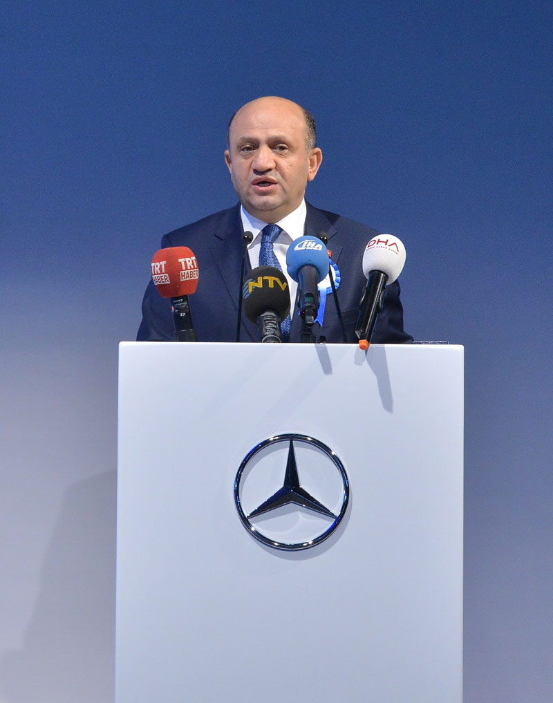 “Biz ülke olarak, sadece üretim için değil, Ar-Ge ve tasarım faaliyetleri için de bir cazibe merkezi olmak istiyoruz. Biz, Mercedes-Benz’in de Ar-Ge faaliyetlerine çok büyük önem verdiğini, firmanın dünya genelinde yaptığı yıllık Ar-Ge harcamasının 6 milyar dolar civarında olduğunu biliyoruz. Mercedes-Benz’in üretimi artıran yeni yatırımlarından büyük memnuniyet duyuyoruz. Dün çok önemli eylemler içeren Ar-Ge Reform Paketimizin TBMM Genel Kurulu’ndaki görüşmelerine başladık. Mercedes-Benz, 2009 yılında Türkiye’de en erken Ar-Ge Merkezi kuran firmalarımızdan birisidir. Şu anda Ar-Ge merkezinde 274 Ar-Ge personeli çalışmaktadır. Şunu açık ve net bir şekilde ifade etmek isterim. Bu ülkede yatırım, üretim ve ihracat yapan sanayicilerimizin her zaman yanında olduk, bundan sonra da her zaman yanlarında olacağız. Bu vesileyle, 1.200 kişiye istihdam oluşturacak olan 113 milyon Avroluk bu yatırımı gerçekleştiren Mercedes Benz’e huzurlarınızda bir kere daha teşekkür ediyorum. Kendilerini ülkemizde bir yabancı yatırımcı gibi görmediğimizi, artık buralı, Aksaraylı bir yatırımcı olarak