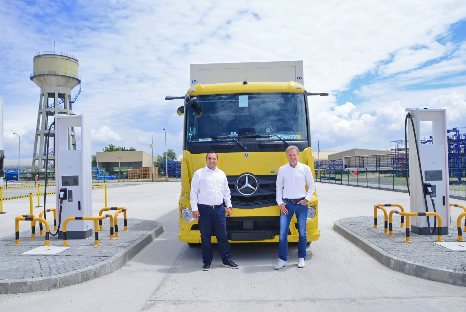Türkiye’de ağır vasıta araçlar için 350 kW kapasitede kurulan ilk şarj istasyonu olma özelliğine sahip olan yeni şarj üniteleri Mercedes-Benz Türk Aksaray Kamyon Fabrikası’nda kullanılmaya başlandı.