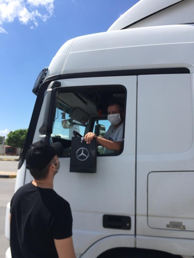 Mercedes-Benz Türk, toplumun temel ihtiyaçlarının aralıksız sağlanabilmesinde hayati bir rolü olan kamyon sürücüleri ile Kapıkule ve Habur Sınır Kapıları’nda bir araya geldi. Bayramda ailelerinden uzak, yollarda, direksiyon başında olan yaklaşık 2.000 kamyon sürücüsü ile buluşan Mercedes-Benz Türk, içinde bayram şekeri, kolonya, maske, dezenfektan, havlu, şapka ve anahtarlık bulunan Mercedes-Benz paketlerini kamyon sürücülerine hediye etti.