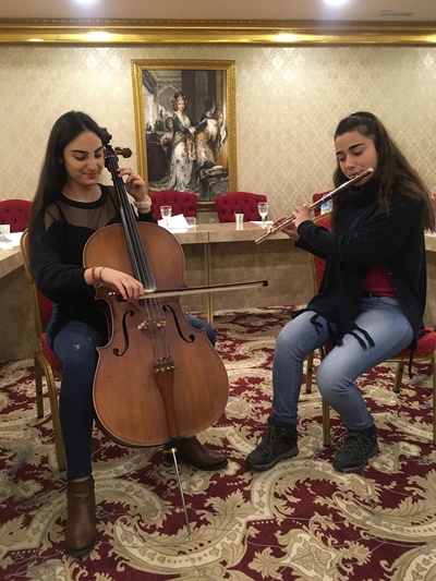 Güzel sanatlar lisesinde öğretim gören, proje bursiyerlerinden iki öğrenci eğitim sonunda katılımcılara bir müzik dinletisi sundu.