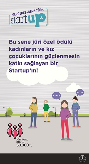 Bugüne kadar iş geliştirme eğitimleri, atölye çalışmaları, para ödülü, ulusal ve uluslararası network geliştirme gibi farklı yollarla 150’nin üzerinde startup’ı destekleyen Mercedes-Benz Türk Startup yarışmasında ilk 10’a kalan Startup’lara “StartUP Boost” adı verilen özel bir gelişim programı ve Mercedes-Benz ile özel Almanya seyahati hediye edilecek. İlk 10 içinden “teknoloji”, “sosyal fayda” ve “jüri özel ödülü” olmak üzere 3 farklı kategoride belirlenecek 3 Startup’a ise 50’şer bin TL para ödülü verilecek. Bu yıl jüri özel ödülü yaptığı işle kadınların güçlenmesine destek olan bir startup’a gidecek. İş kolu veya alanı ne olursa olsun, kriterleri sağlayan ve yaptığı işin sonuçları kadınların güçlenmesini destekleyen bir startup jüri özel ödülünün sahibi olacak.