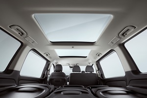 • Önde elektrikli kayar cam ve arkada sabit cam panel olmak üzere 2 kısımdan oluşan 1.90 x 1.12 metre boyutunda panoramik açılır tavan