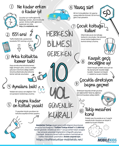 Anket sonunda, hem çocuklara hem de ebeveynlerine temel trafik kurallarını hatırlatmak amacıyla bir infografik