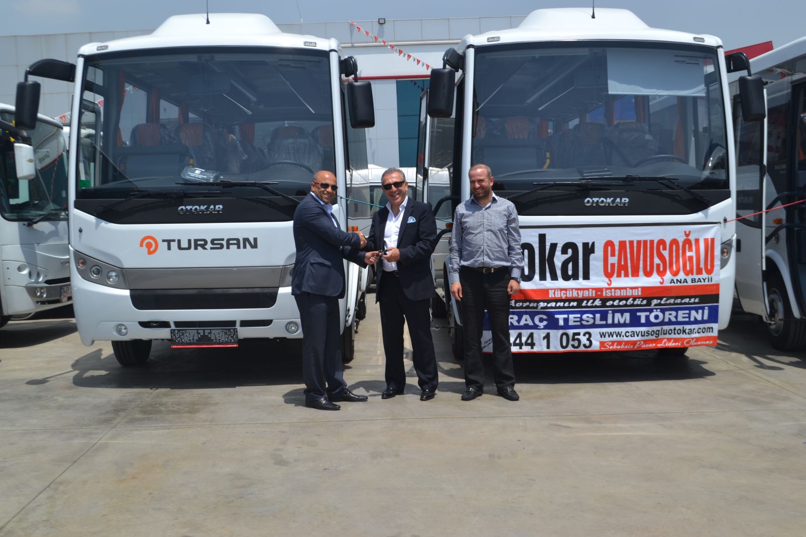 Tursan’a teslim edilen araçların satışı Otokar Yetkili Bayisi Çavuşoğlu Otomotiv tarafından gerçekleştirilirken düzenlenen teslimat törenine Tursan Yönetim Kurulu Başkanı Hakan Orduhan, Otokar Satış Birim Yöneticisi Murat Torun ve Çavuşoğlu Otomotiv sahibi Kerim Civelek katıldı.