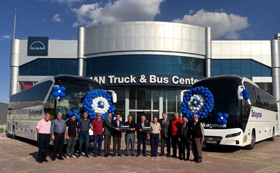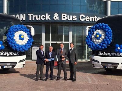 Özkaymak Turizm’in satın aldığı yeni Tourliner’lar, Konya’da Ankara Yolu üzerindeki MAN Yetkili Satış ve Servis Merkezi’nde 4 Haziran’da düzenlenen törenle teslim edildi. MAN Kamyon ve Otobüs Ticaret A.Ş. Otobüs Satış Direktörü Can Cansu, Konya ServisŞube Müdürü Ulaş Oflaz ve Otobüs Bölge Satış Koordinatörü Emrah Albustanoğlu’nun evsahipliğinde gerçekleştirilen törene Özkaymak Turizm ortaklarından Erol Özkaymak ve Özkan Özkaymak ile birlikte şirket yetkilileri katıldı.