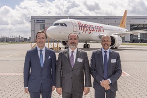 Airbus’ın Hamburg’daki tesislerinde düzenlenen teslimat törenine Pegasus’u temsilen CEO Mehmet T. Nane, Mali İşler Genel Müdür Yardımcısı Serhan Ulga ve Ticaret Genel Müdür Yardımcısı Güliz Öztürk katıldı. Törende Airbus’ı Başkan ve CEO Fabrice Brégier, COO John Leahy, Programlardan Sorumlu Başkan Yardımcısı Didier Evrard ile Avrupa, Afrika, Asya ve Pasifik Başkan Yardımcısı Christopher Buckley; motor üreticisi CFM’i ise CEO Jean-Paul Ebanga temsil etti.