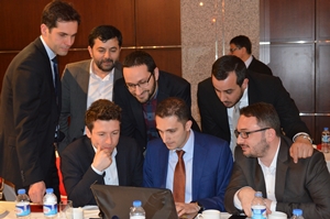 Trayport Takım Lideri Sn. Sak Çalıştayın ikinci kısmında katılımcıların eş zamanlı gaz ticaret işlemleri yapacakları simülasyon yazılımı ve kurallara ilişkin katılımcılara bilgilendirmede bulundu. Katılımcıların 15 ayrı takım halinde ticaret simülasyonuna katılacaklarını belirten Sn. Sak her takımın ayrı bir kullanıcı adı ve şifreyle sisteme bağlanacağını ve her takıma 4 çeyrekte de ticari dengesizliklerini yönetmeleri için ayrı ticari portföyler hazırlandığını ifade etti