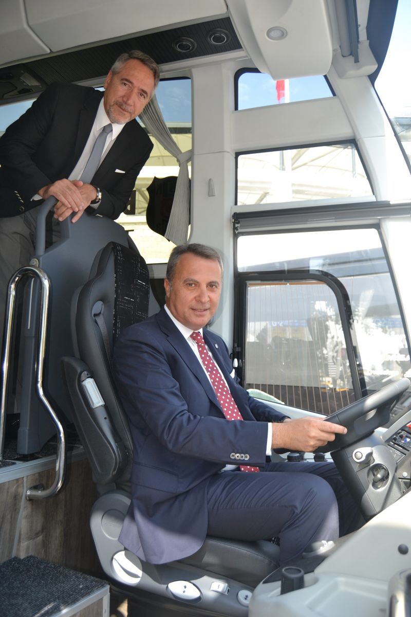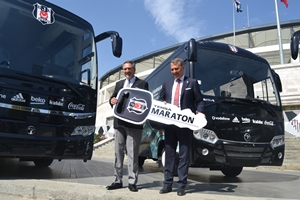 TEMSA MARATON, liderlerin tercihi olmaya devam ediyor. Yolcu taşımacılığının önde gelen firmalarının filosunda yerini alarak kaliteli hizmet sürecinde fark yaratan Maraton, şimdi Şampiyon Beşiktaş’ın da tercihi oldu. Temsa Maraton’un Beşiktaş Jimnastik Kulübü’ne teslimine yönelik Vodafone Arena’da 19 Eylül Pazartesi günü bir tören düzenlendi. Törene Beşiktaş Jimnastik Kulübü Başkanı Fikret Orman, Yönetim Kurulu Üyeleri, Temsa Genel Müdürü Dinçer Çelik ve Kurumsal İletişim Müdürü Ebru Ersan katıldı. Düzenlenen basın toplantısında Beşiktaş Jimnastik Kulübü Başkanı Fikret Orman ve Temsa Genel Müdürü Dinçer Çelik birer konuşma yaptı.
