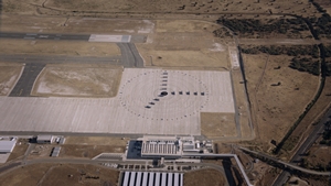 İspanya’da 750 bin metrekarelik ıssız bir alanda 14 kamyon ve 90 sürücüden oluşan dev bir saat oluşturdu.