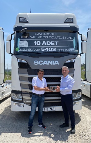 İstanbul merkezli Çavdaroğlu Uluslararası Nakliyat, filosuna 10 adet Scania 540S çekici dahil etti. Çavdaroğlu Nakliyat’ın yeni araçları Tuzla Scania tesislerinde, firma sahipleri Osman Çavdaroğlu, Ünal Çavdaroğlu ile şirket çalışanlarından Batuhan Kayıkçı, Turgut İpek ve Ertan Çebi’ye, Tuzla Scania Satış ve SSH Yöneticisi Volkan Kahya tarafından teslim edildi.