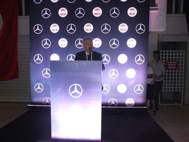 Mercedes- Benz Türkiye Filo Satış Müdürü Soner Gönültaş gecede yaptığı konuşmada, Mercedes- Benz Türk İstanbul bayileri ile bu organizasyona sponsor olmaktan dolayı duyduğu mutluluğu paylaşarak ,” Bu mübarek günde sizlerle bir arada bulunmaktan dolayı son derece mutluyuz .Bu vesile ile Sayın Turgay Gül beyefendiye yeni yönetim de başarılar dileriz. Mercedes-Benz Türk olarak bugüne kadar İSTAB’ın yıllardır sektöre yaptıklarını takdir ediyor, bundan sonraki dönemde sektörün yaşadığı problemlerin çözümünde öncü rolünün devam edeceğine inanıyoruz.. Müşterilerimizin beğenisine sunduğumuz Sprinter ve Vito ile birlikte, pazarın en iyi kredi olanakları, satış sonrası hizmet paketleri ve yüksek takas değerleri ile tüm beklentilerinizi karşılamaktayız Markamızı farklılaştıran da bu hizmetleri tek çatı altında sunmamızdır . Müşterilerimizden gelen olumlu geri bildirimler ve satış adetleri ne kadar doğru strateji izlediğimizin açık göstergesidir. Biz Mercedes-Benz Türk olarak tüm faaliyetlerimizi sorumluluk bilincimiz ile yürütüyor, sosyal, ekonomik ve çevresel etkilerimizi değerlendirerek hareket ediyoruz. Bizim için topluma katkımız, en az yaptığımız işler kadar değerlidir. Bundan yola çıkarak Türkiye’de irili ufaklı sosyal sorumluluk çalışmaları ile uzun yıllardır ülkemizin çağdaş geleceğine katkıda bulunuyoruz ve bulunmaya da devam edeceğiz. Bu değerli imkanı bizlere tanıyan İSTAB organizasyonuna sonsuz teşekkür eder herkese, hayırlı ramazanlar dileriz” dedi.