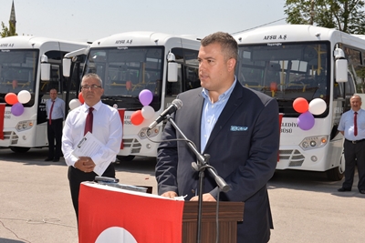 Belediye Başkanı Burhanettin Çoban da konuşmasında, “Ülkemizde toplu taşıma işi iki büyük şehir dışında tamamen özelleşmiş durumda. Ben 2009 yılında Belediye Başkanı olduğumda 363 tane minibüse ve 60 ile 80 civarında halk otobüsüne ihale ile şehir içi taşımacılık verilmişti. Belediyeler sadece para kazanmak için kurulmuş kuruluşlar değildir. Biz beldemizde yaşayan insanların mutluluğunu refahını ve onların ihtiyaçlarını göz etmekle yükümlüyüz. Bugün TEMSA firmamızın ürettiği 15 otobüsü hizmete alıyoruz. Elbette her yeni otobüs hizmetteki kaliteyi arttıran bir ilerlemedir. Ben AFSU firmasının bu güzel 15 otobüsle Afyonkarahisar halkıyla buluşturduğu için kendilerine teşekkür ediyorum. İnşallah Allah kazançlarına kazanç katsın. Çalışanlarına kendilerine huzur versin mutluluk versin” diye konuştu.