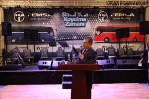 Temsa Genel Müdürü Dinçer Çelik’in ardından Satış Direktörü Murat Anıl sektör mensuplarına yönelik bir sunum gerçekleştirdi. Sunumuna yeni ürünlerin tanıtımında sektör mensupları ile birlikte olmaktan duyduğu mutluluğu dile getirerek başlayan Murat Anıl, “Birinci önceliğimiz hep sahanın sesini iyi dinlemek ve bize gelen bildirimleri en yüksek verimlilik sağlayacak şekilde ürünlerimize yansıtmak oldu. Bu sayede Temsa, 2010 yılından itibaren istikrarlı büyümesini sürdürerek 2015 yılını da yüzde 25’lik bir pazar payına sahip olarak tamamladı. Sizlerin katkısı ve desteği ile hedeflerimizi daha da büyüteceğiz ve sizlerin ihtiyaçlarına en uygun araçları sunmaya devam edeceğiz” dedi. Başarının bir göstergesinin de pazardaki rakamsal veriler olduğuna dikkat çeken Murat Anıl, “2014 yılında toplam otobüs pazarında 1736 adetlik satış rakamı gerçekleştirdik. 2015’te bu rakam toplam otobüs pazarında 2146 adete yükseldi. Üç yıl öncesine gittiğimizde ise pazardaki toplam satış adetimiz 1000 adetti. Bu rakamlar Temsa’nın geldiği başarı çizgisini anlatmak açısından da önemli” dedi.