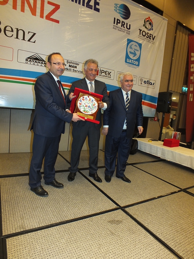 Ulaştırma Bakanlığı Müsteşar Yardımcısı Şaban Atlas, bakanlık olarak ulaşım alanında bir çok yatırım ve projeyi hayata geçirdiklerini ve bunları yaparken de taşımacılık sektörü paydaşlarını da ihmal etmediklerini ifade ederek, ” İlk kez 2003 yılında Karayolu Taşıma Kanunu’nu, 2004 yılında da Karayolu Taşıma Yönetmeliği’ni çıkardık. 2004 yılından bu yana 13 yıllık sektörel deneyim ve yaşanan sorunlar nedeniyle yürütülmekte olan Karayolu Taşıma Yönetmeliği’nin yenilenmesi için sizlerle birlikte çalışmalara başladık. Bu çalışmaların taslak olmaktan çıkarak en kısa zamanda yürürlüğe girmesine çalışıyoruz. Otobüsçülerimizin daha hızlı hizmet almalarını teminen hizmet bürosu açılması uygun görülmüştür. Karayolu İstanbul Bölge Müdürlüğü irtibat bürosunun inşaatına kısa sürede başlanacaktır. Sektörümüze hayırlı olmasını dilerim.” diye konuştu.