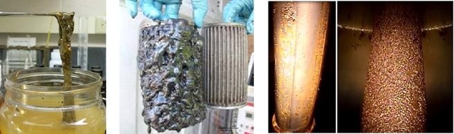 Petrol türevi bir hidrokarbon ürün olan dizel yakıt, yani motorin, sağladığı yüksek çekiş gücü ve fiyat avantajı nedeni ile tercih edilen bir yakıt ise de, her organik maddede olduğu gibi bu yakıt içinde de hasar ve zarar verici bazı canlılar türeyebilmektedir. Organik kökenli yakıtlar, hortumlar, contalar, o-ringler, vb malzemelerin ana yapı taşı olan hidrokarbonlar ile beslenen bu canlılar, kısaca Hidrokarbon Asalağı İstenmeyeN (HAİN) mikroorganizmalar olarak tanımlanabilir. Bu HAİN’ler ancak bir mikroskop ile görülebilecek kadar küçük boyutlarda olsalar da, yalnızca 12 saat gibi bir sürede birkaç santimetre kalınlığında canlı bir kütle oluşturabilecek bir hızla çoğalabilirler. A’dan D’ye şekillerde görüldüğü gibi kahvemsi yeşil veya siyahımsı ya da kızıl kahve renkleri, ağır ve pis kokuları ile varlığını belli eden bu HAİN yaratıklar, sümüksü şilteler halinde birikebilirler. Yakıt tanklarının nefeslikleri, dolum ağızları ve benzeri diğer yollardan akış sistemi içine kolayca girebilen bu HAİN’ler sisteme bir kez sızdılar mı, akış hatlarını ve filtreleri tıkayarak, hortumları ve hortum bağlantılarını şişirerek akaryakıt ekonomisini olumsuz etkileyebilirler.