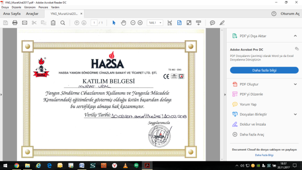 Tora, her sene düzenlediği SEÇ haftasındaki yangın eğitimlerini hem teorik hem de uygulamalı olarak gerçekleştirmekte ve başarılı olan kişilere Yangın Eğitim Sertifikası vermektedir.