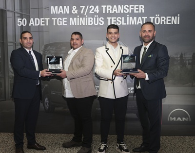 MAN Kamyon ve Otobüs Ticaret A.Ş., toplu teslimat törenlerine bu kez Antalya ile devam etti. Antalya Yetkili Servisi ve Bölge Bayii Meçikoğulları Otomotiv’in yaptığı satış ile Akdeniz ve Ege bölgelerinde hizmet veren sektörünün lider firması 724 Transfer’e, 50 adet MAN TGE teslimatı yapıldı. Classical Tours markası olarak 1995 yılında kurulan kısa sürede bölgesinde sektöre yön veren firmaların başında gelen 724 Transfer, turizm ve servis taşımacılığında kullanacağı yeni MAN TGE’leri törenle teslim aldı.