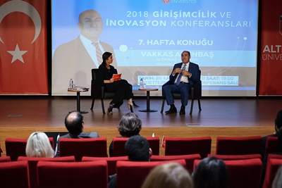 Altınbaş Üniversitesi’nin düzenlediği Girişimcilik ve İnovasyon Konferansları’nın bu haftaki konuğu Vakkas Altınbaş oldu. Gayrettepe Yerleşkesinde 26 Kasım Pazartesi günü gerçekleşen söyleşide Vakkas Altınbaş öğrencilerle buluştu. Vakkas Altınbaş, kısa süre önce raflarda yerini alan Altın Yıllarım kitabını, geçekleştirdiği girişimleri, yatırımları, iş hayatındaki yolculuğunu, tecrübelerini ve hedeflerinin peşinden gitmenin önemini Altınbaş Üniversitesi öğrencileri ile paylaştı.