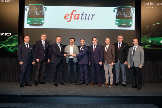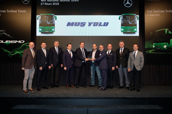 Mercedes-Benz Yeni Tourismo teslimat töreninde Adıyaman Ünal, Artvin Ses, Astor , Ayder Turizm, Ben Turizm, Çağdaş Güven, Çanakkale Truva, Düzce Güven, Efa Turizm, Efe Tur, Isparta Petrol, İkaş Nakliyat, Kamil Koç, Kars Turgutreis, Katırcıoğlu Turizm, Malatya Medine, Modelsan Savunma, Muş Yolu, Özdecan Turizm, Özerciş, Özkaymak, Sakarya Vib, Sorkun Petrol, Turtaş Taşımacılık, Tuzla Restoran, Uz-Tur firmalarına 43 Tourismo 16 2+1, 10 Tourismo 15, 2 Tourismo 16 olmak üzere toplam 55 adet otobüs teslim edildi.