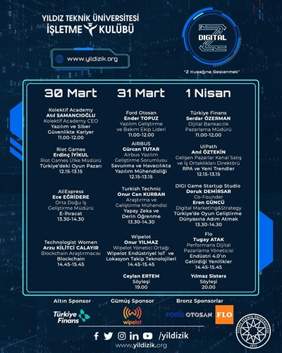 Yıldız Teknik Üniversitesi’nde kariyer organizasyonlarıyla adını sıkça duyuran Yıldız İşletme Kulübü, çalışmalarına hızla devam etmektedir. Yıldız İşletme Kulübü 30-31 Mart-1 Nisan tarihlerinde Digital Z etkinliği gerçekleştiriyor.